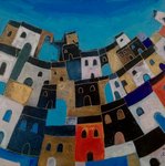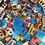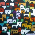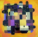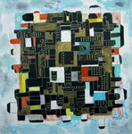 2021This painting is an abstracted landscape with houses, inspired by how the dutch landscape is nowadays plus a glimpse of the more traditional houses. It is a colourful composition where the colours varie in transparency. Inspired also a bit by victory boogie woogie by Piet Mondriaan where there is a connection between colours and composition with music.