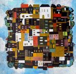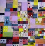 kleine tekeningen en schilderijenmet als onderwerp stad of dorp